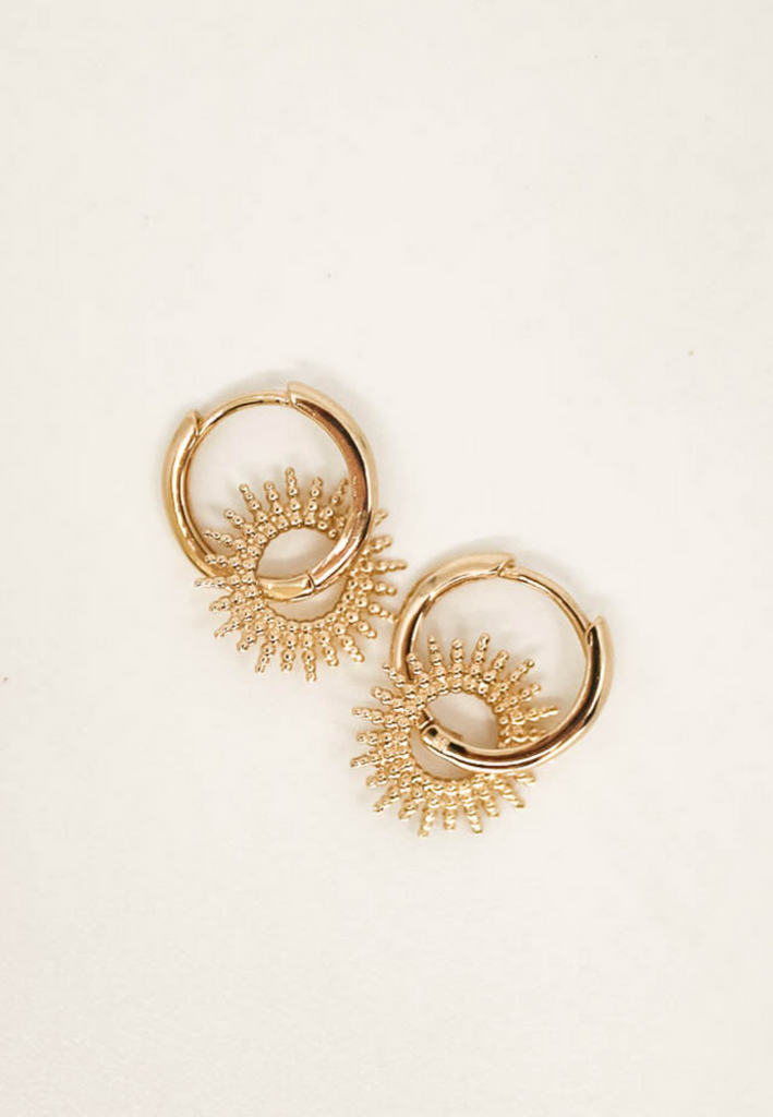 This unique pendant, sold individually, is designed to instantly elevate your style, whether hung on a pair of hoop earrings or worn as a pendant on a necklace. Its sun shape, with finely crafted rays, is a symbol of strength, energy, and rebirth.